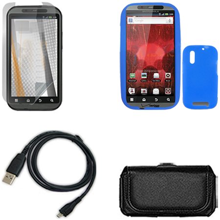 iNcido Brand Motorola Droid Bionic XT865 Combo Trans. Blue Silicone Skin Case Faceplate Cover + Black Horizontal Leather Pouch + Rapid Car Charger + USB Data Charge Sync Cable for Motorola Droid Bionic XT865 for Sale - Review & Buy at Cheap Price